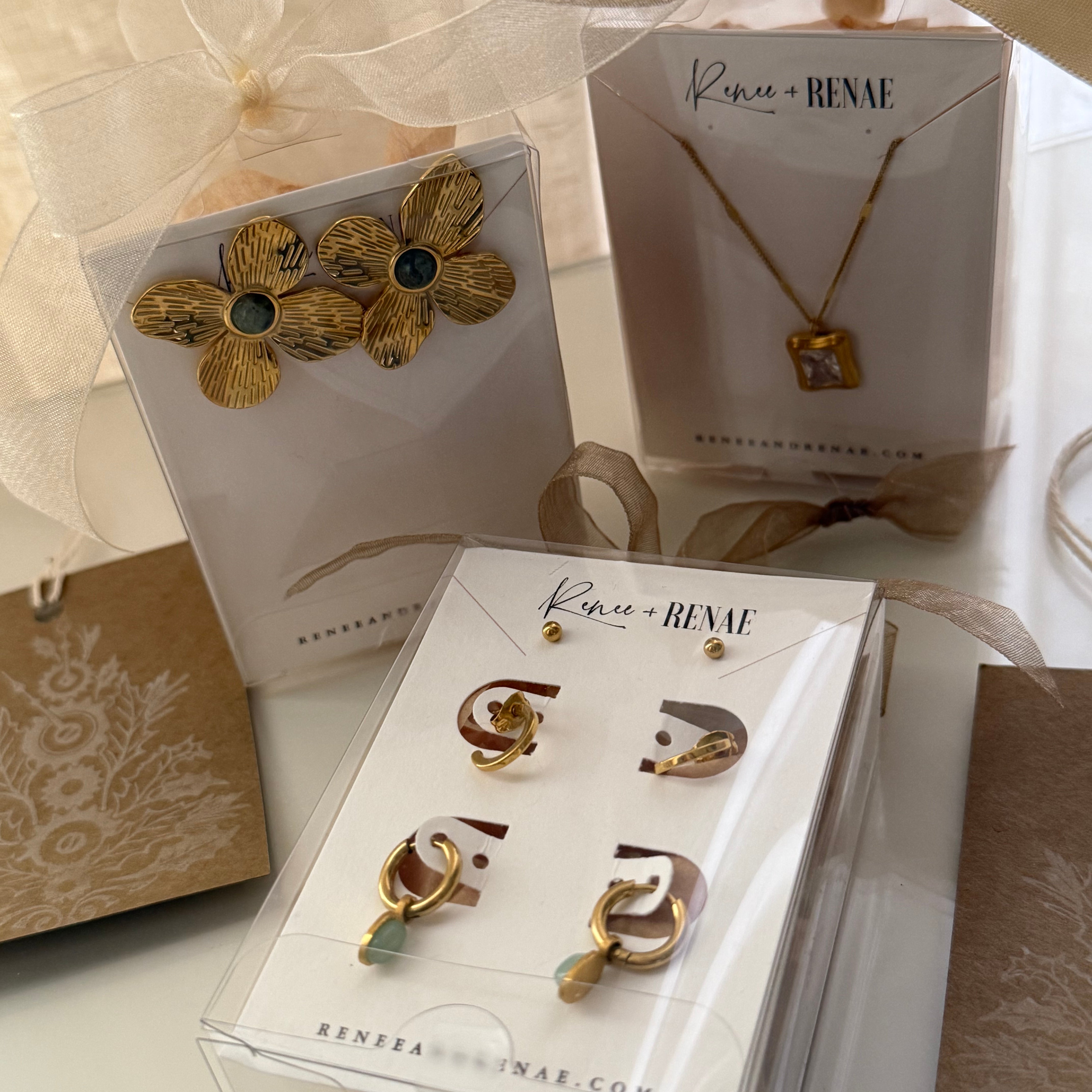 Here at Renee and Renae (Formerly | The Katz Meow Creations), you will find a sophisticated feminine jewelry line ready to accessories a woman no matter the occasion! Our core line is handmade and designed in house, while also being a source for on trend, curated feminine jewelry, bridal accessories, and handcrafted paper goods.